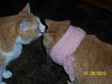 Gave Jupiter his dose of ABs this morning. Then let him lick gravy out of a can of friskies shreds in gravy -mostly because I am worried about him spitting up the AB (hes done it before with liquid meds) Hoping he has a good appy today.