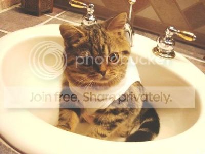 Yesterday's pic with Gracie claiming and defending her "prezzie", and then today's pic with the muscle-T (Gracie in the whirlpool after a tough workout at the gym)... she sort of scares me. :o Not sure, but I'm thinking she might be able to take my lunch money... :lol:
