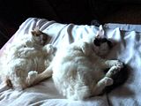 Today my photobucket find is my sleeping twins - KT and Snowshoe. This was a cold day last year - the heater is right next to the corner of the bed. Clickable thumbnail as it's too big to insert the full image.