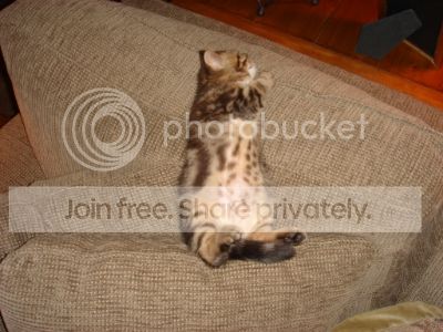 Lil Stinka is doing fabulous this morning. She's a happy, silly girl. Mike went looking for her to test last night at PMPS and couldn't find her ANYWHERE. We knew she was in the house somewhere but just found a new spot. In the hallway linen closet near the guest rooms, we have a laundry basket just for her...has her baby blankie the breeder made for her and some other soft blankies...she loves it in there. But she wasn't there. However, when I double checked, I heard this tiny, Gracie 'sup?. And there she was on one of the upper shelves...she had wadded and pushed the blankets around and made herself a little nest where we couldn't see her :lol: :lol: :lol: