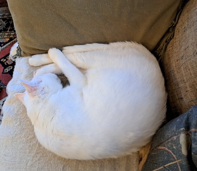 Big round boy is now sleeping hard next to me on the sofa. He's like a big full-moon