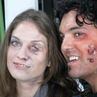 I couldn't find an electronic version of the second poster in the series but I did find some pix of us all made up and ready to go, I had to shrink them to fit them here. The final poster had us all in neck locks just like they keep the rabbits they are testing on in.