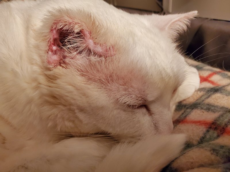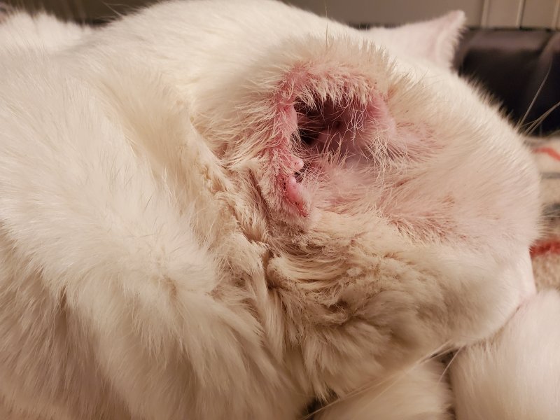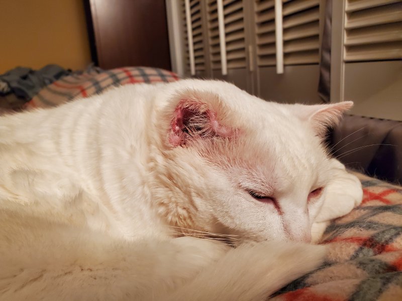 So, I bought some pet nail trimmers. He hated his paws being touched and I got clawed up a bit, gave me a fairly deep cut on my upper lip. Took 3 days to get them all trimmed, didn't want to take his cone off just to have his ear clawed. He seemed happy to be able to freely bathe and scratch himself after I took it off today.I don't have to worry about cleaning him off after he eats now which is nice. He's still drooling a bit.