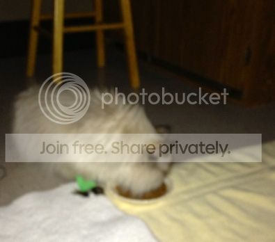 I turned the light off and Tashie & I listened to an audio book ..... no eating! Then, a light bulb went off! I asked then for some of the LC dry food that we had "talked" about when she was originally diagnosed but she seemed to transition well onto the wet so I left that alone ..... well, the DRY FOOD DID IT! She was chomping on it and I made sure I told them to call them "cookies" because she knows that word!