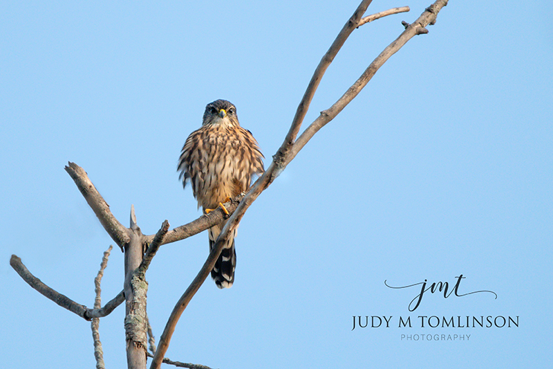 Today's photo is of a Merlin taken a few days ago. He was pretty high up and I tried to wait him out but he would not come down. He was there again today, same tree.