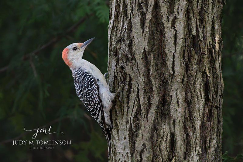 The other day when I was photographing the American Redstarts in my backyard, a Red-Bellied Woodpecker flew in! So today's photo is of a female Red-Bellied Woodpecker. PS the male flew in the next day.
