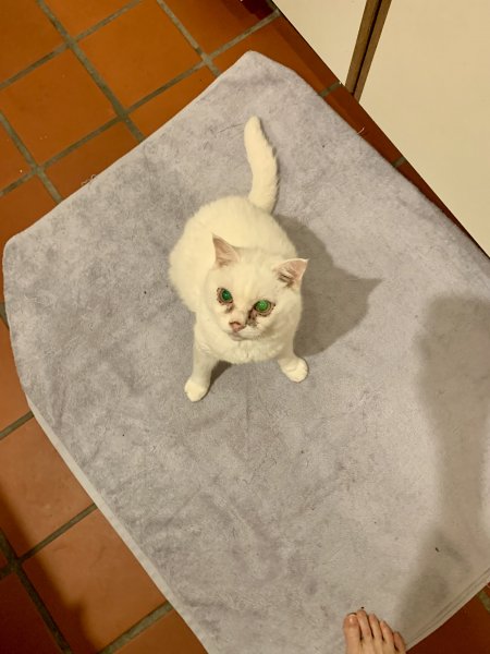 He went to sleep under the sink in the bathroom after breakfast which is good that he's not just going back to bed. Also a sign of some relaxation. He likes to cook himself on the floor heating :woot: