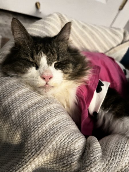 Miss Ivy is snug as a bug and high as a kite. She's beautiful.