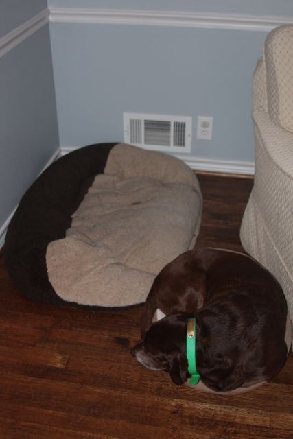 LOL...I love big dogs in little cat beds - sooo cute! The heating vents are extremely popular around here, too. I have cat beds in front of all the wall vents. We also have a few vents that are in the floor - a few of the boys lay directly on top of them - they're perfect "cat-body" size :lol: !