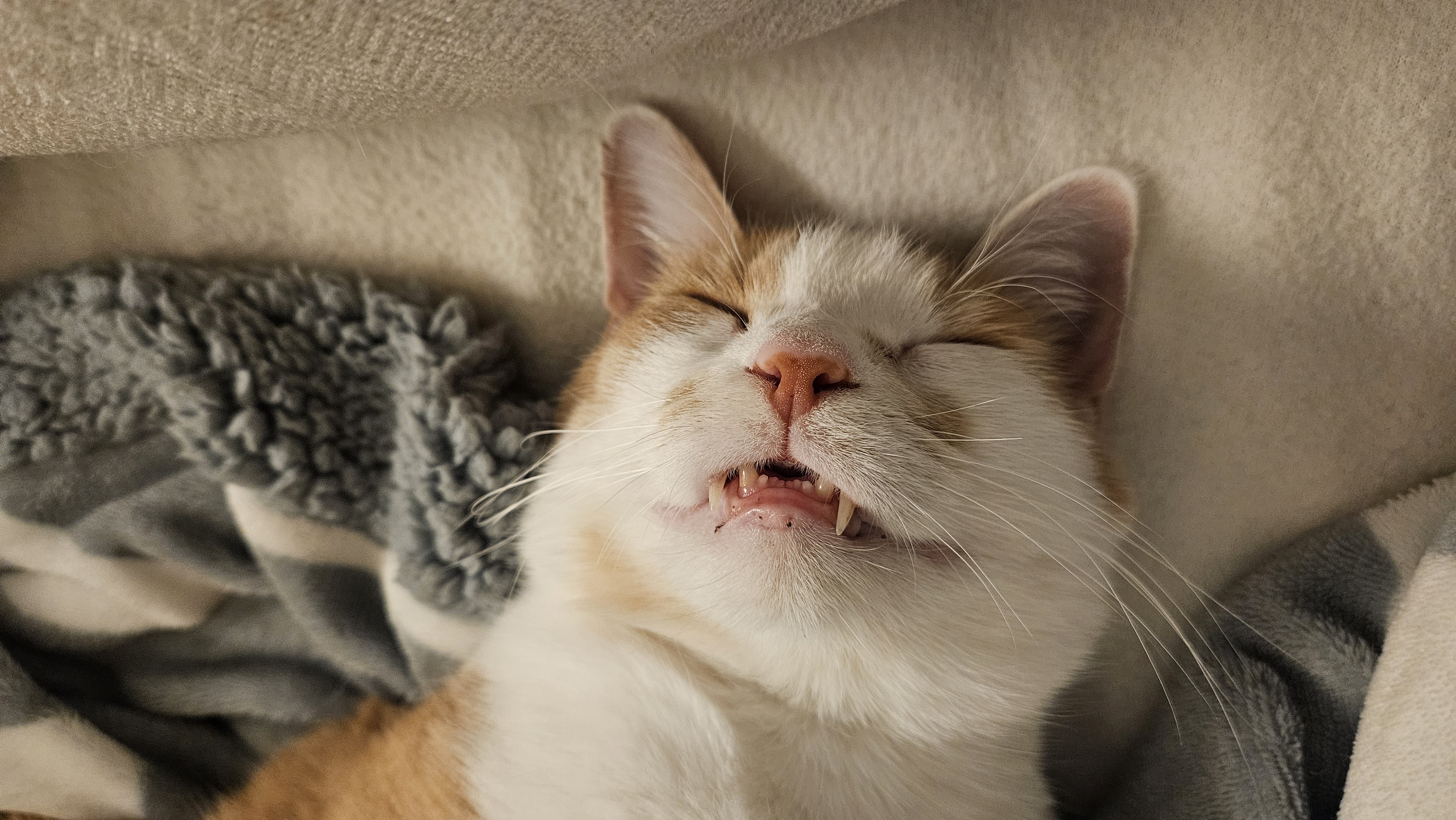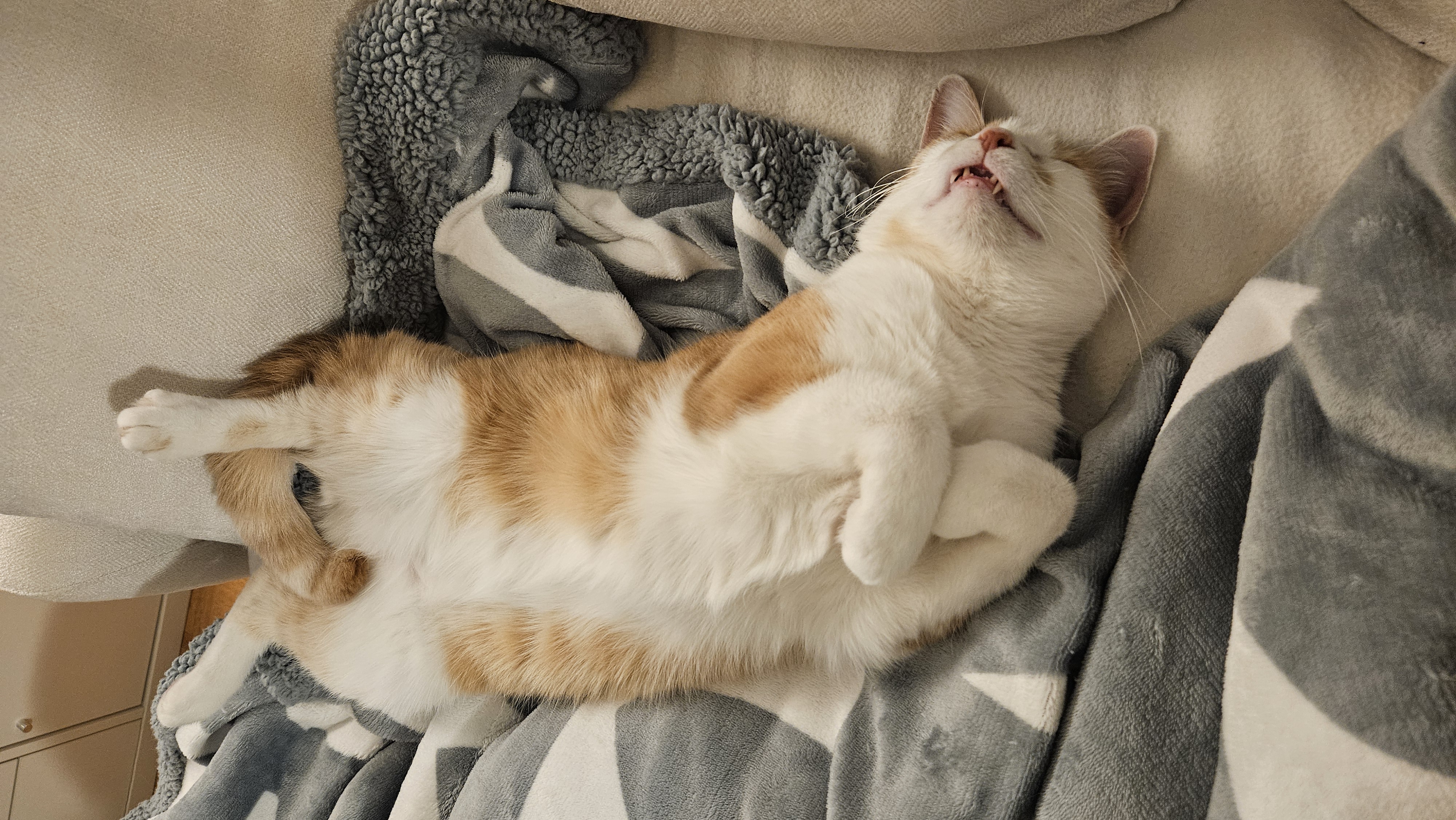 This is how Peanut likes to sleep. Do you think he's comfortable??? 🤔 😹🙊