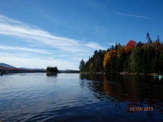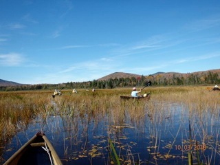 We had a beautiful paddle today: 9 miles on the Cedar River Flow and the Cedar River--a remote area in the central Adirondacks. The autumn color was just beyond peak, but still very vivid. We saw a flock of resting Canada Geese on their migration, 2 loons, a trout, a kingfisher, and a snake. I drove 150+ miles today, paddled, got too much sun, and am wiped out this evening.