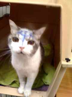 Below are two pictures of Tableau I thought I’d share. The first is when he was having his radiation treatments (that explains the blue ink) and the other is of him in happier times. I wish I had a picture of “the meat mustache” but you can use your imagination.