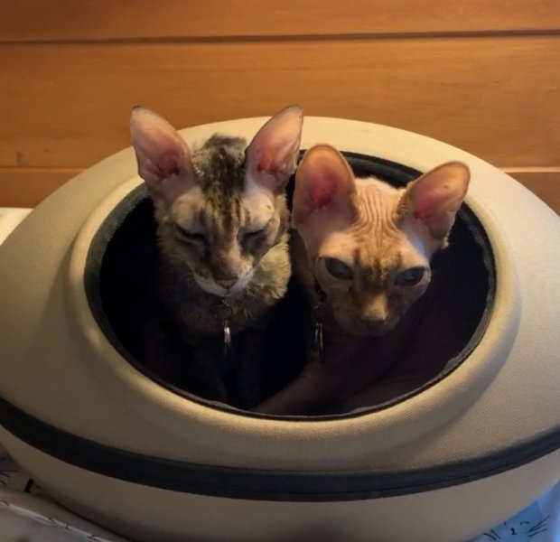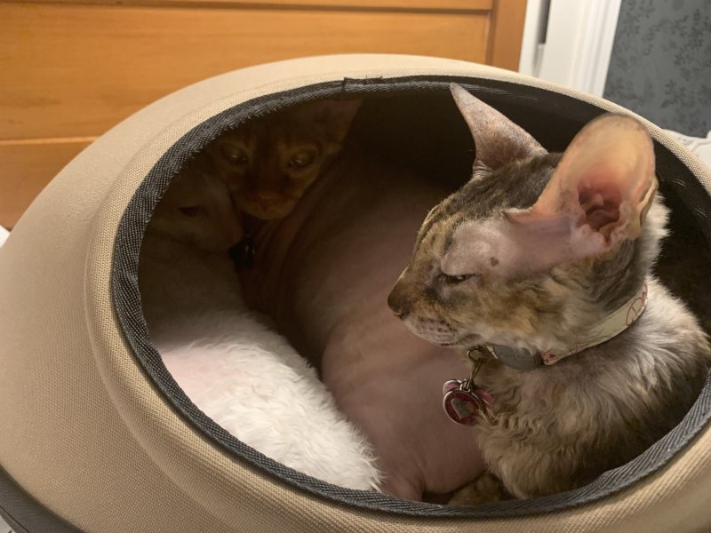 Today’s Daily Disco photo It’s of him and Coco in their heated cat bed which is on my bed where the second pillow would be… It keeps them from sleeping on my head, Ha Ha Meow!