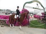 Ro posing by the glorious flower display at the entrance to Idaho Horse Park love that the flowers match his ribbons.