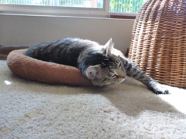 Kitties are doing well too. Lola, Bug and Vanessa continue to love their catio, and are out in it all the time, even in rotten weather. it is nice that a large portion of it stays dry, even in high winds and heavy rain. warms my heart to see them out as much as they are. best investment ever. Catios rule! Vanessa is responding very well to her treatment for lymphoma. We are into week three of the chlorambucil drug for the lymphoma, week 7 of prednisilone and B12 for GI support. She has had no reaction to the chlorambucil, no nausea, vomiting, lethargy, etc. That in itself is such a relief! As of yesterday she has regained about 8 ounces of her rather substantial weight loss. That too is so great. So.... we remain hopeful that her treatment plan is working, and she can be with us for many more months/years. Paws are crossed! As far as Vanessa is concerned, she does not know she is sick. She plays, runs the catio, ventures out in it all the time, eats very well, enjoys life as it is. I will hope that this remains true. We do all we can to help support her. Life is good for our kitteh barista.