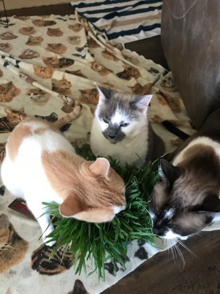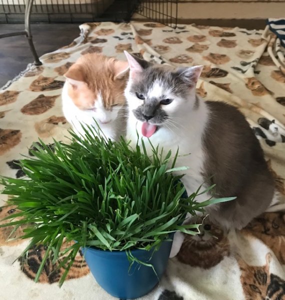 I've been growing sweet grass lately, and the cats LOVE it - even the dog likes a few bites. It's a wonderful treat that doesn't have carbs!