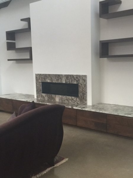 The fireplace looks great! Between that and the courtyard, Gabby and Gizmo have the best of both worlds. Would love to see a post-decor pic, too ... :cool:
