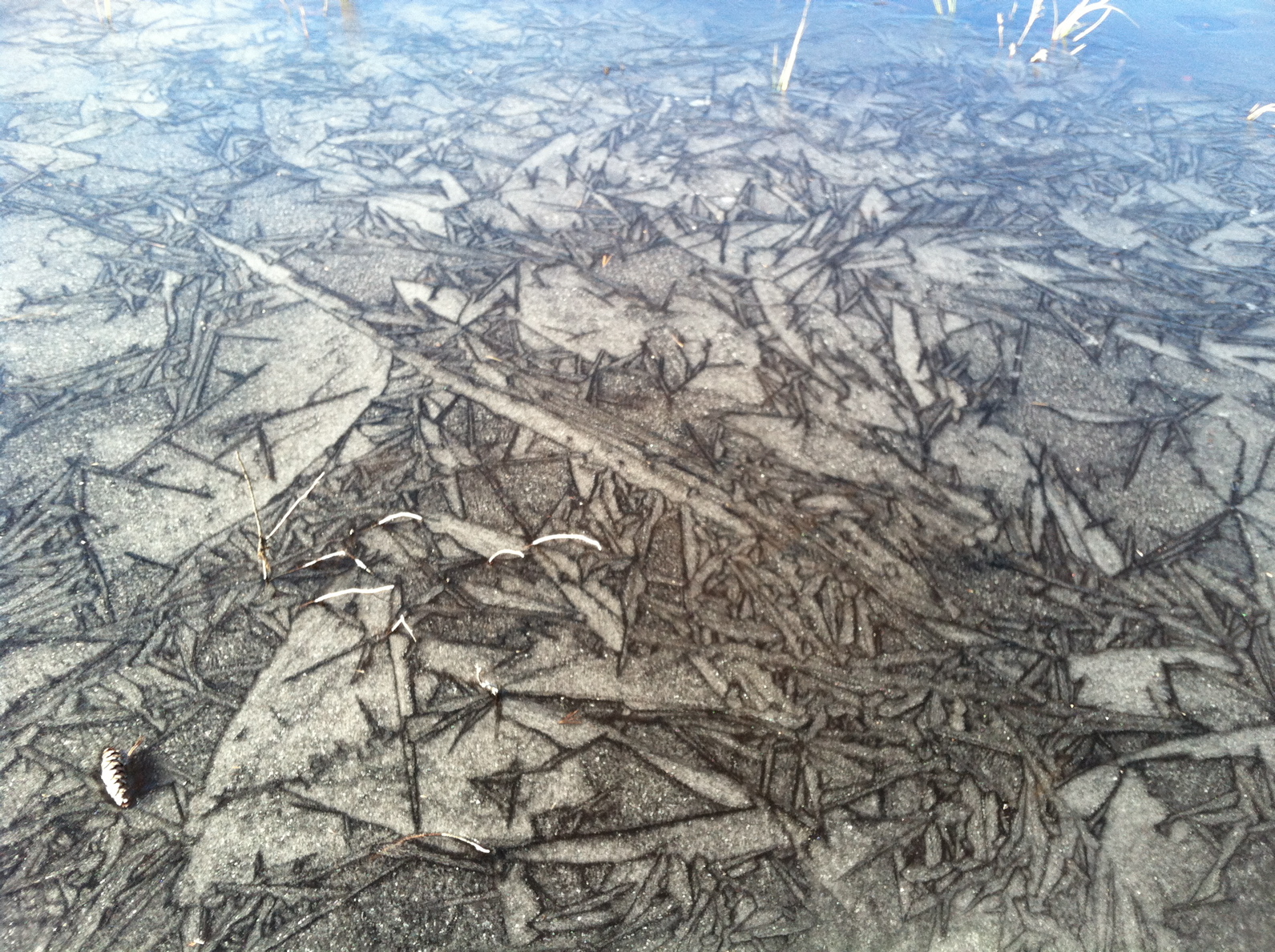 I'm enclosing some pics I took yesterday: the ice patterns on the Heron Marsh; Rusty enjoying sunshine.