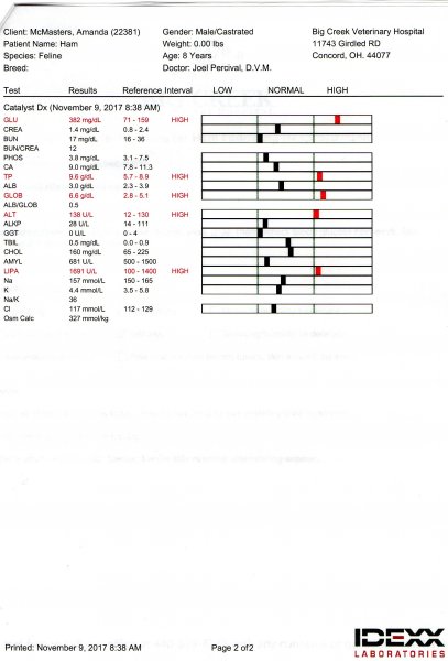 This now leads us to this week. Thursday Ham barley ate. He'd eat a bite or two here and there, but not enough to amount to much he wouldn't even eat turkey. Friday morning I got up and got ready to check Ham's BG's and he didn't come when I called him which was strange. I checked it and his BG was 122 (if I recall correctly) I got up to get food by time i had gotten his food ready he was back in his favorite spot in the closet. I called the vetty and took him back in. He did a glucose check and gave him a shot of Onsior and sent me home with Mirtazapine tablets (appetite stimulant). He had asked about keeping Ham again but I couldn't afford it for a third week in a row. Ham and I got home last night and he ate his whole dinner and a couple bites of his middle meal. But this morning we are back to didn't come when I called and wants no part of his food! So I gave him a pill maybe he'll eat in a little bit.