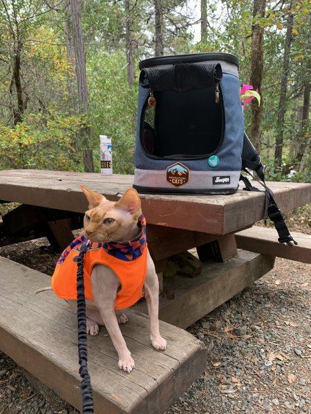 I've been enjoying the nice Autumn weather, gardening and pruning and suckin' leaves up already, and I know the cat's days of being able to spend time out on the patio in their condo is coming to an end, but I sure have some fun summer outing memories with them and look forward to more in 2021! I did get some snowshoes, but since the closest snow zone is over an hour away, I am not sure if I will venture out with the cats in the snow, but I might if just to snowshoe with one of them in the backpack!