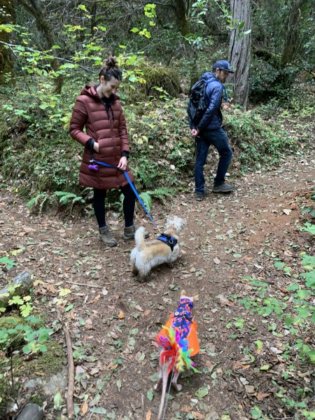 Attached are a few photos of Disco and I out for a hike at Limpy Creek Botanical Trail a couple of weeks ago!