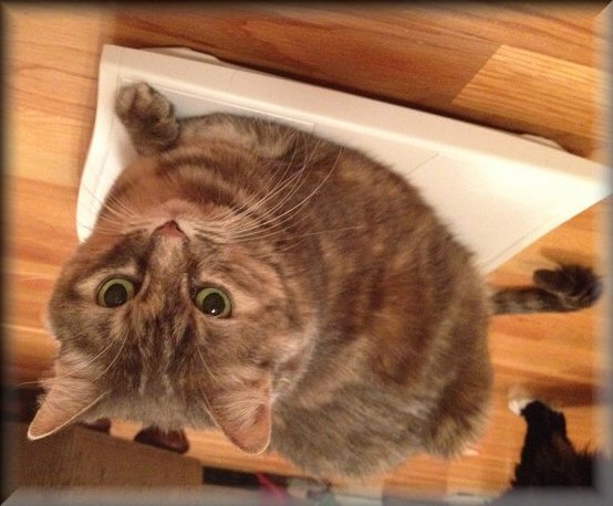 When we first set the trap for her, she walked in, started chowing on her big plate of Fancy Feast...but was too light and underweight to trip the trap!!! DH went out and adjusted the trap, and a few minutes later, we had her. The rescue group took her to the hospital, where she stayed for 2.5 weeks to recover from nearly starving to death. And, it turned out her previous owners had declawed her, but didn't spay her!