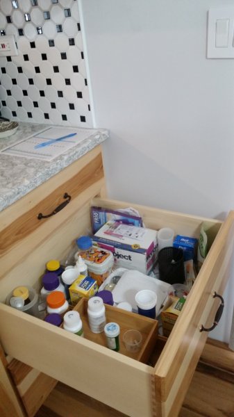Y'all ready for kitchen ?????? Still have to put switch plates on permanently but want to seal grout first and don't have enough sealer. So here are before then after and one shot of Ollie's drawer. Kitchen is a mix IMO of retro, modern, traditional, and one workman said farmish. It works for me.