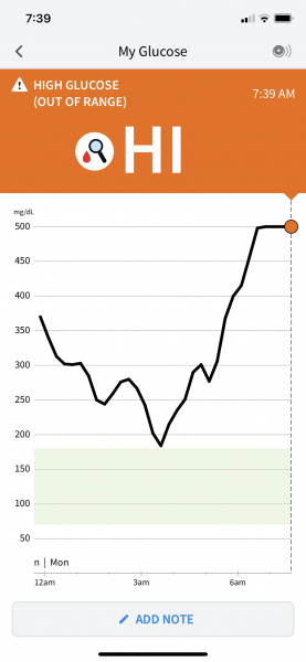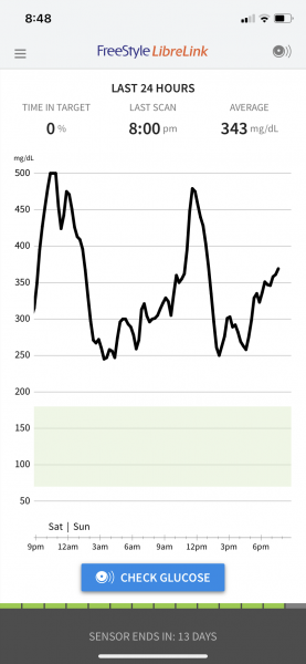 we're having better luck *knock on wood* with his libre this time around. Im sure the last one was defective now. Im trying to remind myself that we only have so many pinks because this is different than his alphatrak pet meter and if it were that he'd probably still be in the reds. Once this libre is done i purchased a relion meter and i'll be using that as its just way more cost effective. I havent been able to catch him in the box in two days to get a ketone test, but he's alert, active and eating like a champ so my vet told me not to worry so much about checking that every day unless he gives me reason to believe somethings going on. Question though. Is this based on human meter numbers or pet meter numbers(see pic)?? And a quick remind me again, im sorry, this is so much to learn ontop of holiday stress and crazy work schedules, human readers read less than pet ones correct? Just trying to see if i should be happy about the more pinks and yellows that have been showing up. Here's his chart so far for today also. His shot times are 11am and 11pm