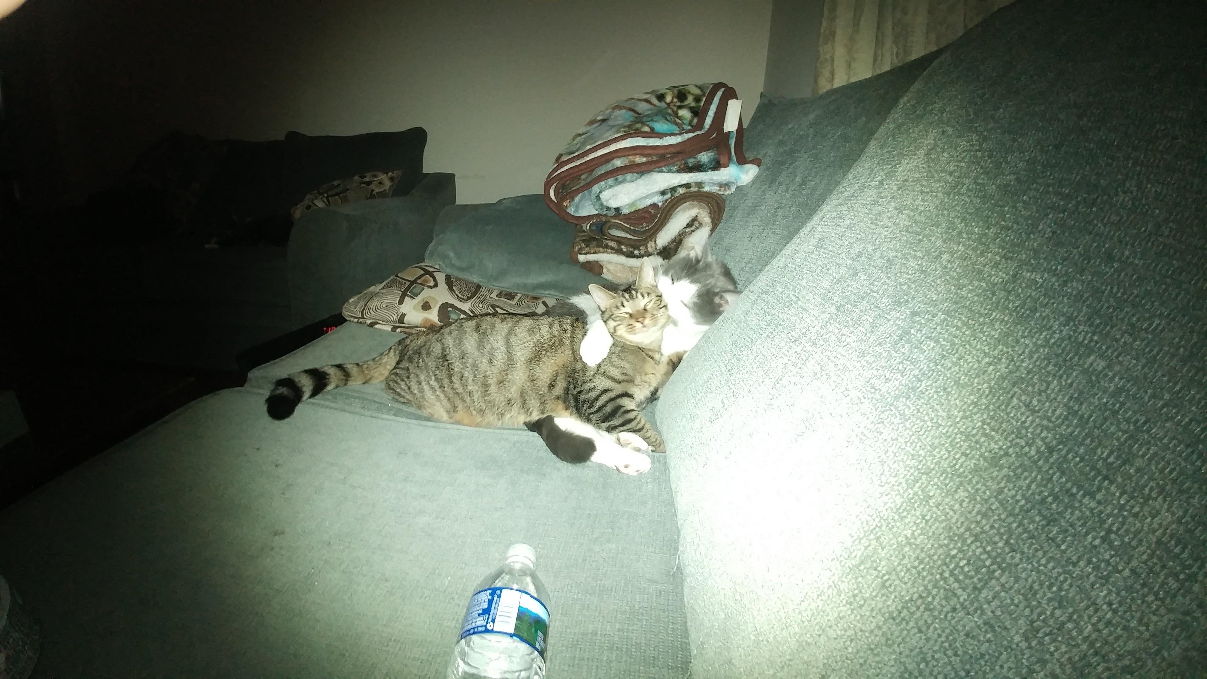 He does look a lot like my boy did. He was an outdoor cat we took with us when we moved to WA and then kept him indoors. My daughter named him Tiger. He was the sweetest of fellas. This was Tiger and Nico. I'm thinking the stress from losing him (which actually was his 3rd and last brother he'd lost in 7mo time), is what brought on the diabetes. Because he changed after.