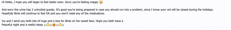But I rather deal with my anxiety than seeing Binie so high all the time. That really worried me. Today she peed remarkably less and I think she also feels better again.