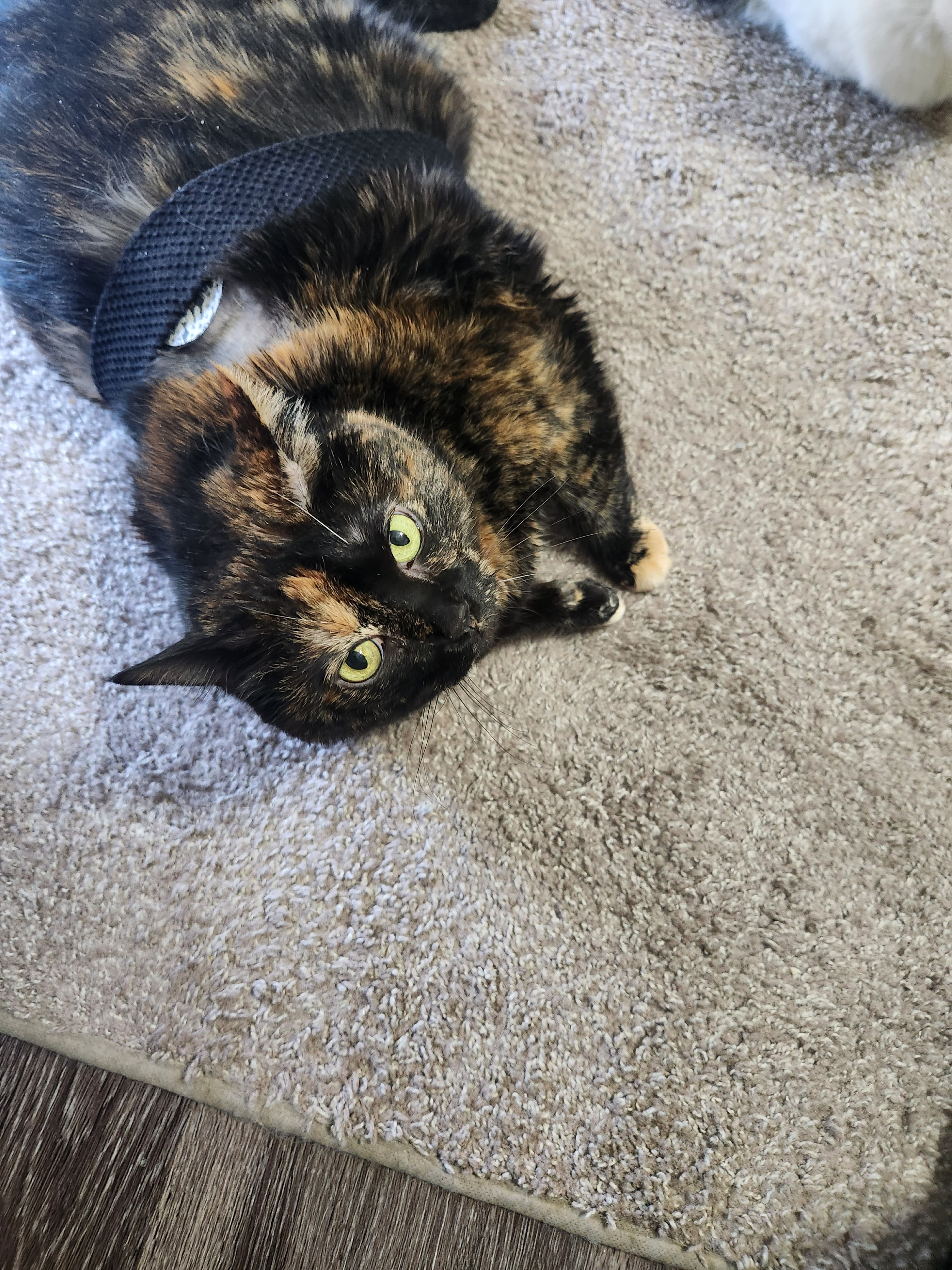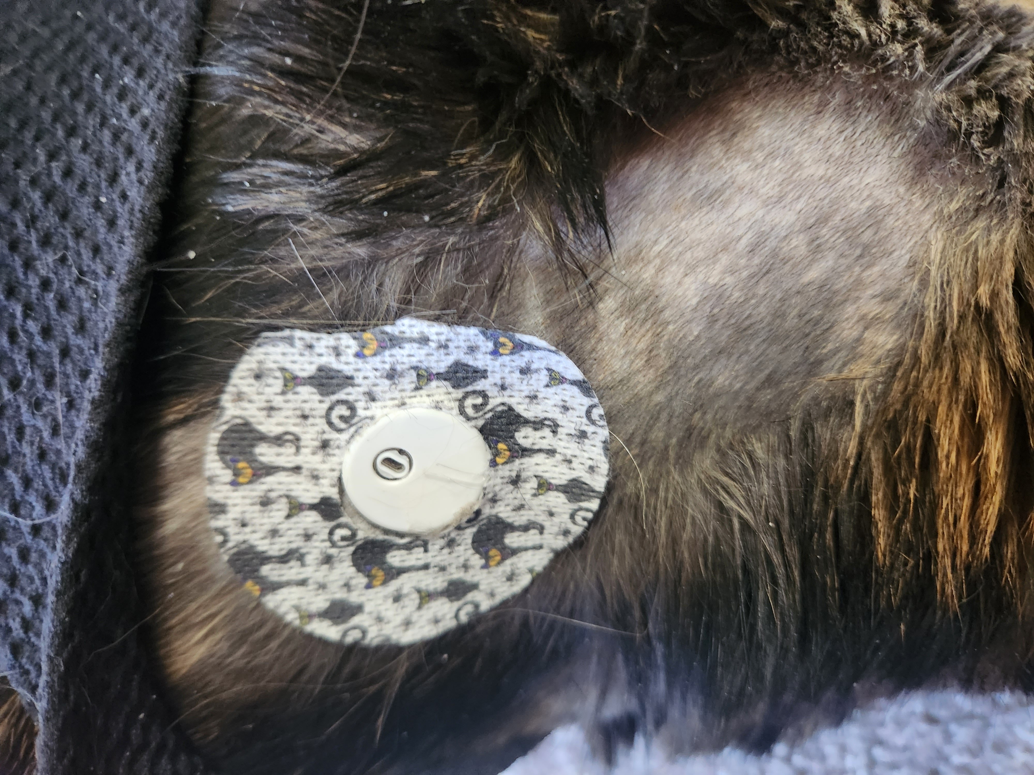 Monster has been in a mood since I had to mess with bandage wrap, put on a type one style patch. It's not sticking that great because she needs to be shaved more and she for sure is  not going to allow that right now. Ive heard wonderful reviews about these patches so I'm hoping I get the chance to see it wonderfulness.