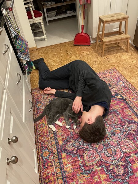 She stayed in high greens yesterday after stealing some panetone bread. She did not like it, apparently, I mostly found some crumbs and a raisin on the floor.