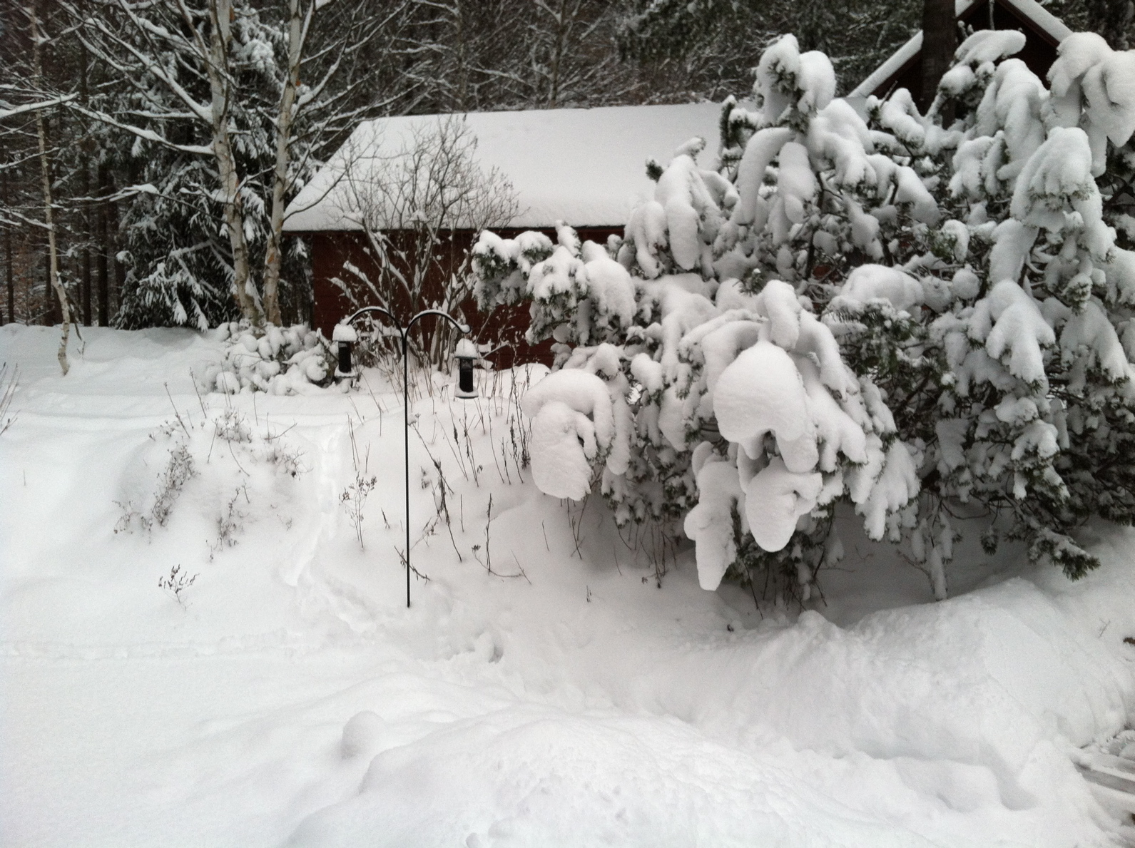 Our new snow is beautiful. I'll take a pic later this morning for posting here. Whiteface Mt. (the big ski mountain near Lake Placid) got 2 feet of snow. Here we got about 1 1/2 feet. I hope we can get out to snowshoe this afternoon. The roads look good.