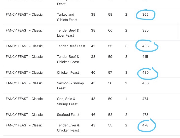 The foods I fed him before were much lower by at least 100 for wet - not sure about the dry (it was Salmon based which probably means it was high). I can’t really afford feeding the other brands regularly, though I could possibly add it into the mix.