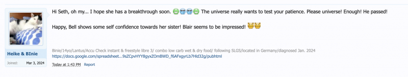 ). It is nice to not see her pop way up in the 300s when the insulin should be peaking. She's on her fourth dose after trying the new pen, so it doesn't look like there is a miracle to be had there. We march on!