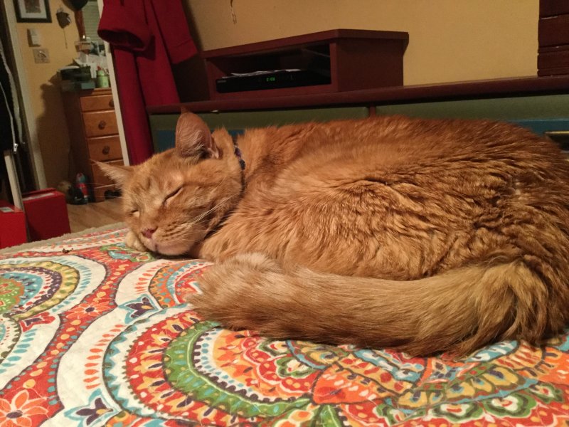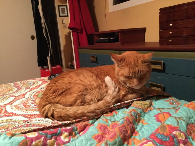 Woke up really early with Gussie curled up next to my head on the pillow..nice and toasty..drifted back to sleep only to be awakened to a BitO'Froth vomit shortly before the regular alarm sound.