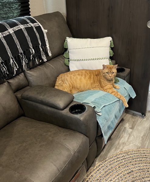 That's cute, we always took Molly's scratch post ( perch) with us, when we went camping. Molly didn't like travelling in the truck. But once she was in the camper she was happy. :cat: