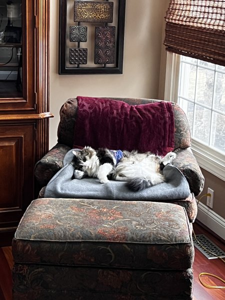 Here’s Ivy yesterday having an afternoon snooze. Pretty comfortable