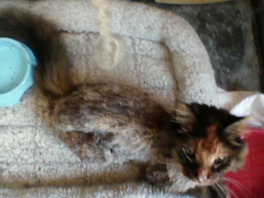 Yeah I watched her on DCIN for about 6 months before I couldn't take it anymore and had to adopt her, her previous owner wouldn't treat her or even change her diet (said she wouldn't eat canned) BS because when she got here I plopped a bowl of souped up Friskies in front of her along with her regular dry and she drove face first into the Friskies and never looked back. Although I thought she was going to eat me out of house and home those first few months because I free fed her, she was eating 4 (5.5oz) cans by herself a day. Of course her original owner also said she was just a baby at 5 years old...well maybe if you put a 1 in front of that 5...but she is no where close to 5 years old closer to 15 I'm guessing she at least acts like a very old lady. I originally adopted her because she was so young I thought she would fit well with the civies since most of them are between 3-7 years old, except for the old man that we lost to cancer this last Novemeber but she ended up being his best friend and he had just turned 18 when he past. I was pretty horrified when I held her the first time as tried to test her poor little ears. I couldn't feel anything on her but a solid mat. I had to take needlepoint scissors and a seam ripped just to clear enough space on her neck to give her first shot, she was that matted.