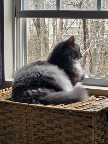 Kai is on neighborhood watch duty this morning. He takes his job very seriously.
