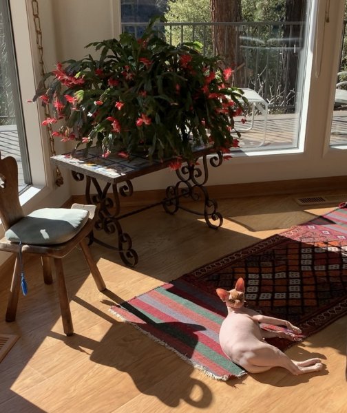 Lovely Christmas Cactus! Hope he enjoyed the sunshine...does he wear sunscreen in the Summer?