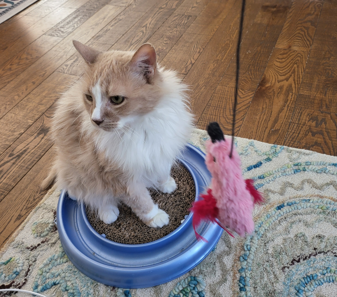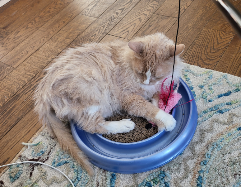 Petey seemed a little more himself yesterday -lower numbers, moving him back to just the rabbit pate?? We even had a little two for one play sesh!