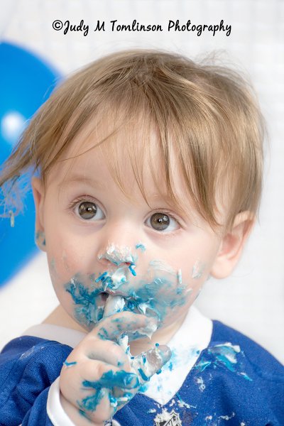 The cake smash session yesterday was a complete success and within seconds of having the cake placed in front of him he did a face plant into it and did several face plants in the next 30 minutes. He was a happy boy and had icing from one end of him to the other; it was a lot of fun! Pictures attached