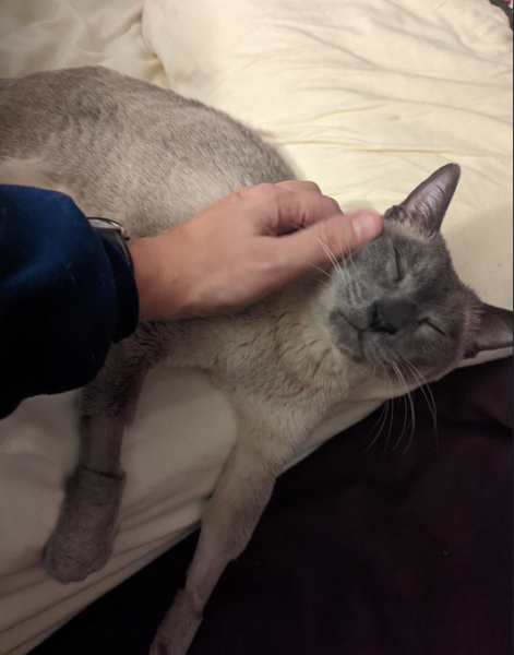 Speaking of which, here is a picture of Hendrick from January 15, just home from the hospital and recovering from DKA. You can see in his face that he is trying to enjoy the pats but is still not feeling great.