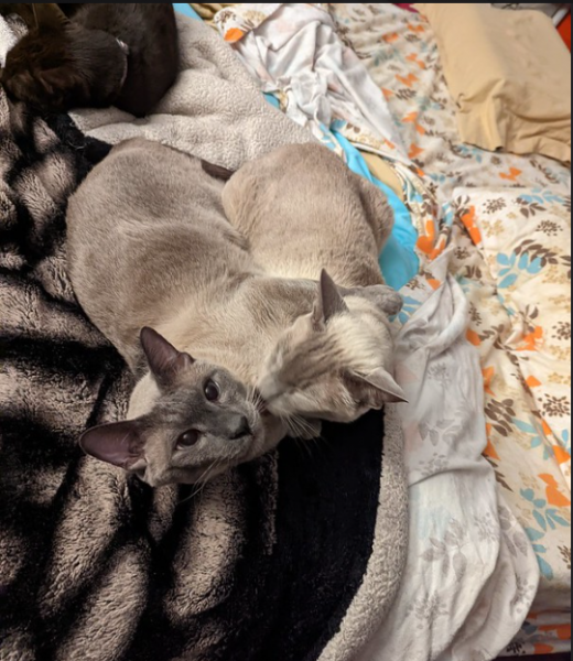 Here he is in March, much happier, healthier and cuddling with brother Shylo: