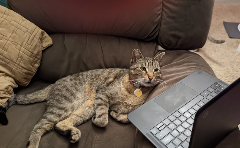Feeling a little better in late February, cuddling with my wife on the couch: