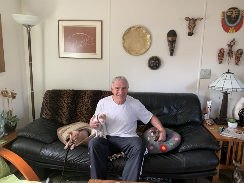 Today’s Daily Disco photo is one of Disco, Coco & Brighton with my brother, who lives with me and loves the kitties, too!