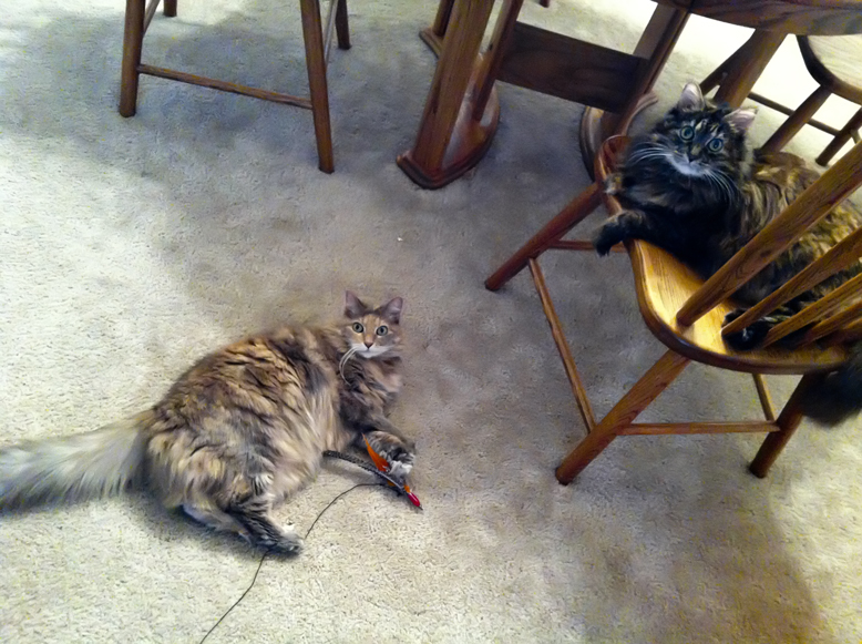 I can't tell if Curry is more interested in Sid or trying to intimidate her.....She's been following Sid around. Sid has now started staying in "her" bedroom more or very close to it. Curry is doing alot of smelling of Sid. No aggressive behavior from either, just a few targeted hisses.