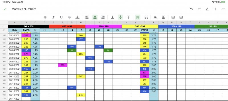 ? 6/16/21 Marmalade’s numbers - her chart posted for last several weeks. wee