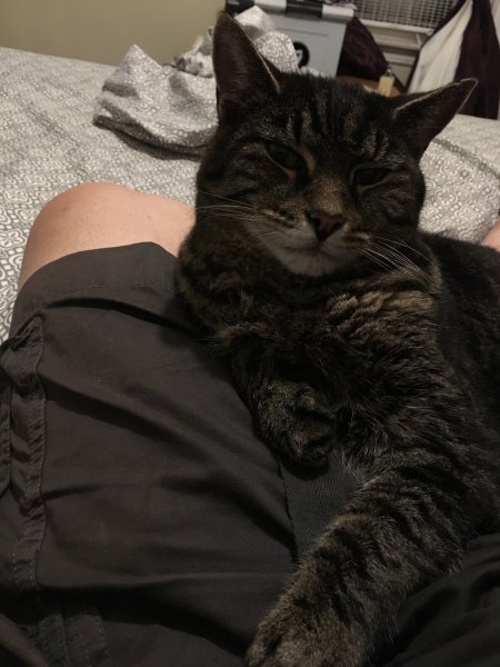 Simmy is acting fine—alert, social, walking around.
